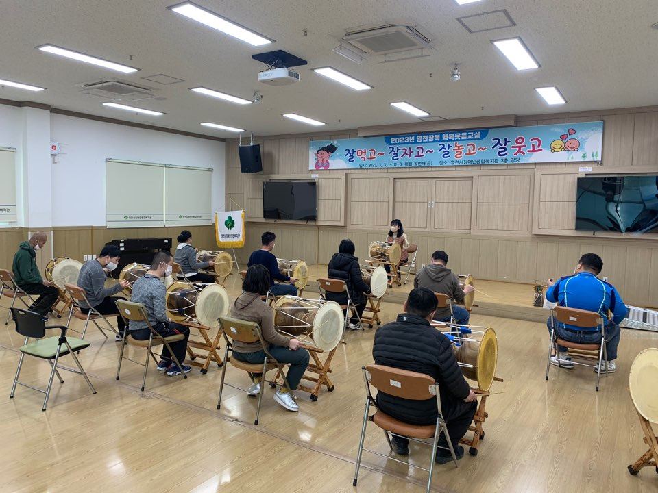 2023년 주간보호센터 음악활동 실시 권요한 0 1618 2023.03.03 17:04 ▶일시: 2023.3월~12월 매주 (금)14:00~15:00▶장소: 복지관 강당▶대상: 주간보호센터 이용고객▶내용: 사물놀이 악기의 이해 및 기본 가락 배우기