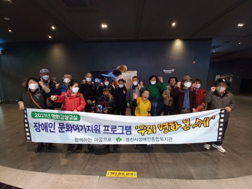 2023년 3월 영화감상교실 실시 강종법 0 1252 2023.03.10 17:48 ■ 일시: 2023.3.10.(금) 12:40~16:00■ 장소: 롯데시네마 영천(영천시 완산동 소재)■ 대상: 영화감상교실 이용고객 15명■ 내용: 장애인 문화여가지원을 위한 단체 영화관람 실시(관람영화: 대외비)