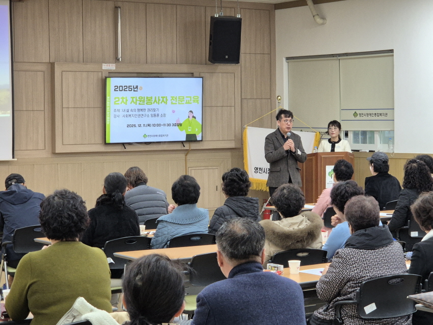 2025년 2차 자원봉사 전문교육 박경희 0 64 12.11 17:17 ■ 일시: 2025. 12. 11.(목) 10:00~11:30■ 장소: 복지관 3층 강당■ 대상: 자원봉사자 50명■ 내용: 자원봉사자의 감정소진 예방과 정서 회복력 향상을 위한 전문교육 실시