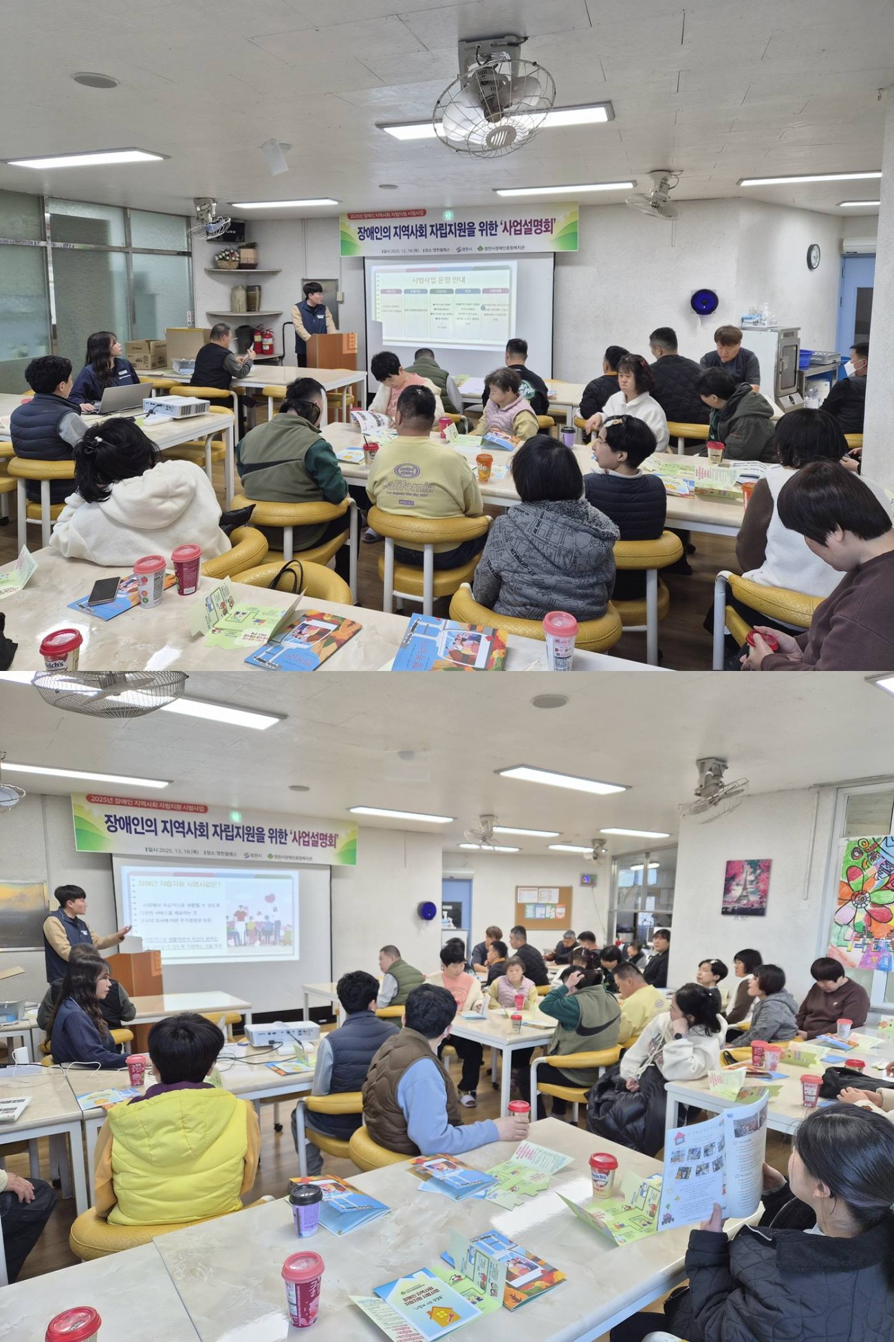2025년 장애인 지역사회 자립지원 시범사업 2차 사업설명회 이동현 0 15 5시간전 ■ 일시: 2025. 12. 18.(목) 15:30~17:30■ 장소: 영천팔레스(경북 영천시 북안면 소재)■ 대상: 영천팔레스 입소자 22명, 종사자 6명, 보호자 3명 총 31명■ 내용: 시범사업 관련 사업 설명회 실시(사업 안내 및 지원 절차·내용 등 정보제공)