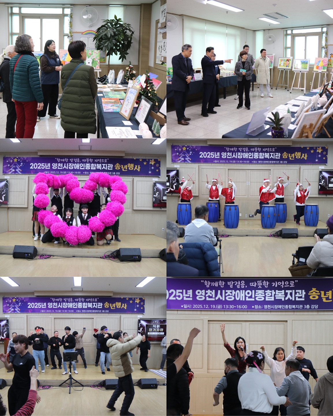 2025년 송년행사 실시 이창영 0 23 3시간전 ■ 일시: 2025. 12. 19.(금) 13:30~16:00■ 장소: 영천시장애인종합복지관 3층 강당■ 대상: 지역 장애인 및 지역 주민 180명■ 내용: 개회식, 작품전시, 문화공연, 장기자랑