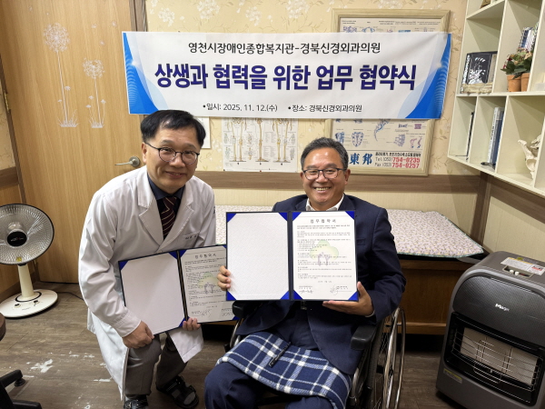 영천시장애인종합복지관(관장 권순종)은 12일 경북신경외과의원(원장 권장구)과 장애인 건강 및 재활을 위한 업무협약을 체결했다.